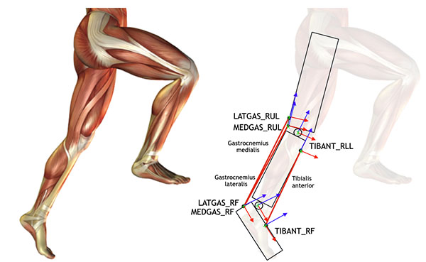 Real-time lower leg muscle forces estima- tion using a Hill-type model and whole-body wearable sensors